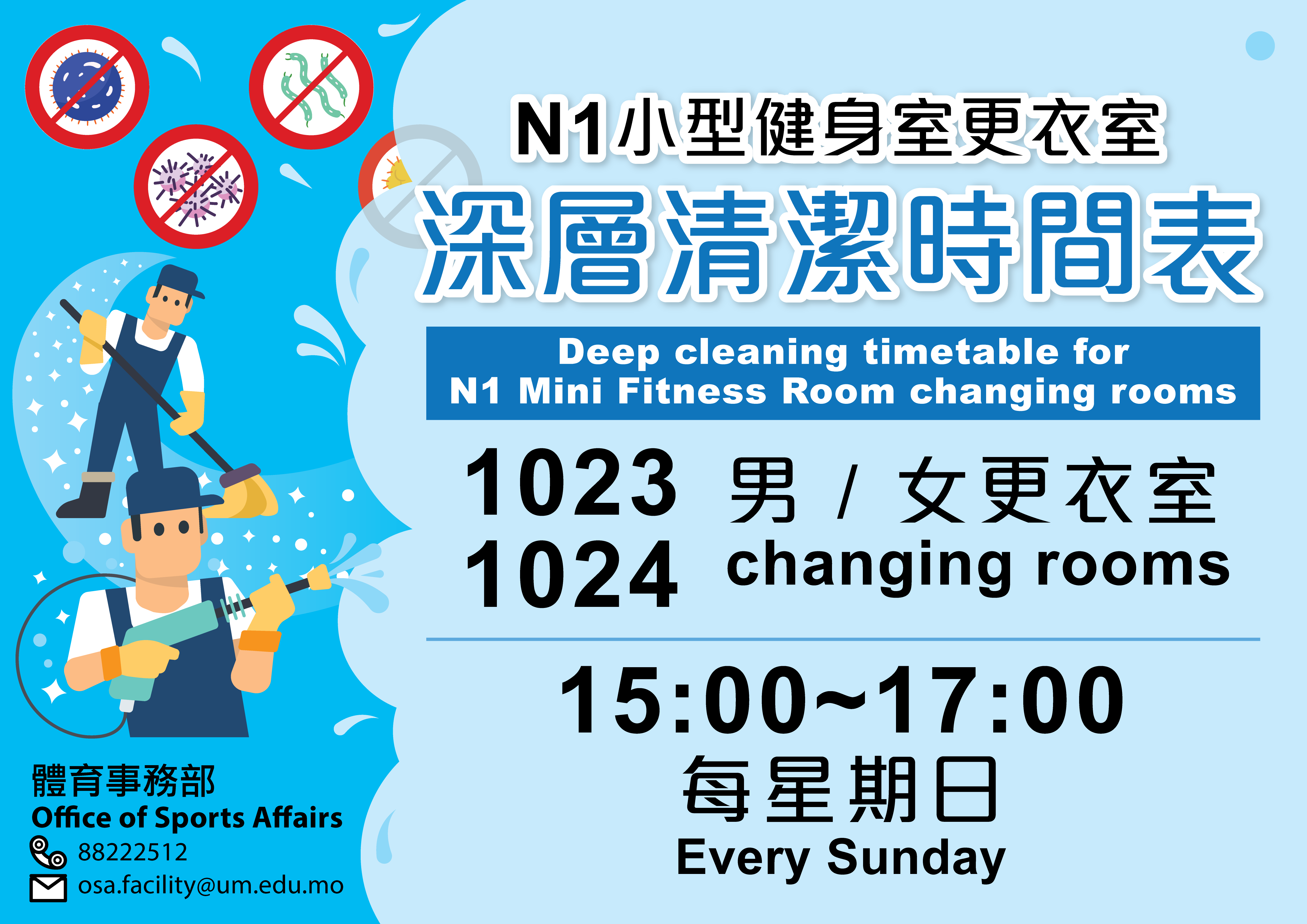 | 9 | N1-1024 | Male | Inside N1 Mini Fitness Room | Yes, using MOP5 as deposit | No | No | Only opens during opening hours of N1 Mini Fitness Room |